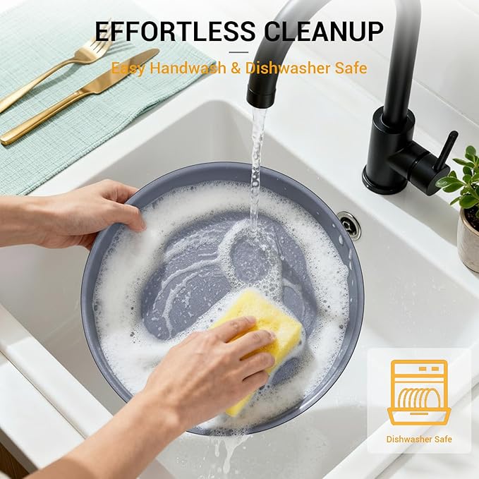 - 【Usage Tips】To keep your cookware set in perfect condition, we recommend using silicone, wood, or plastic utensils. Remember to remove the handle when cooking to keep it away from the heat.