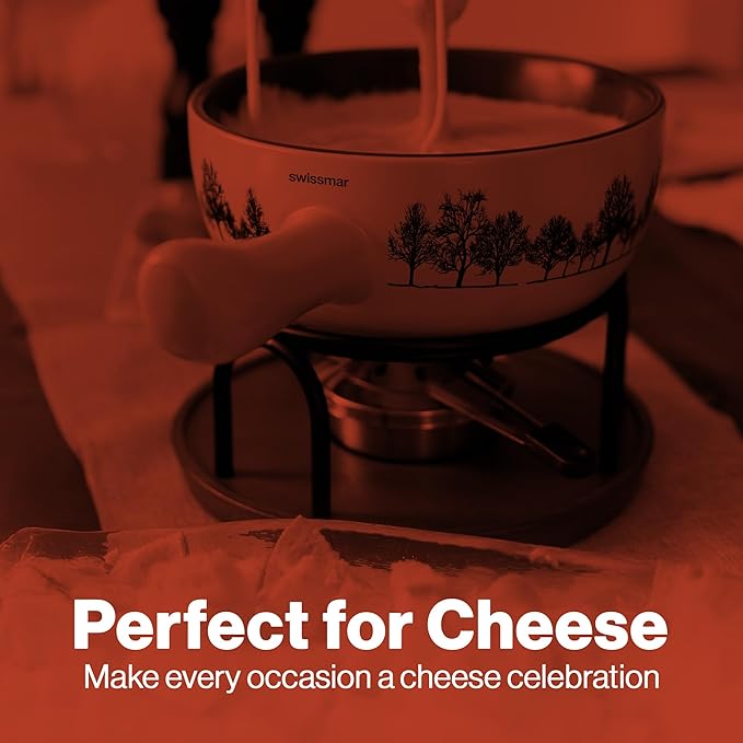 - Durable Ceramic Cheese Fondue Pot – Classic Swiss caquelon design made of high-quality ceramic, ideal for preparing smooth and creamy cheese fondue.