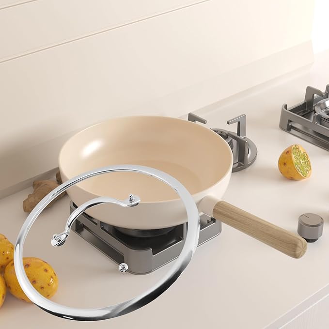 - Material:The lid is made of 4mm tempered glass, which will not break even if dropped from a low height. The edges of the lid, the handle, and the vent are made of stainless steel,polished surface avoids cuts and you can use it with confidence