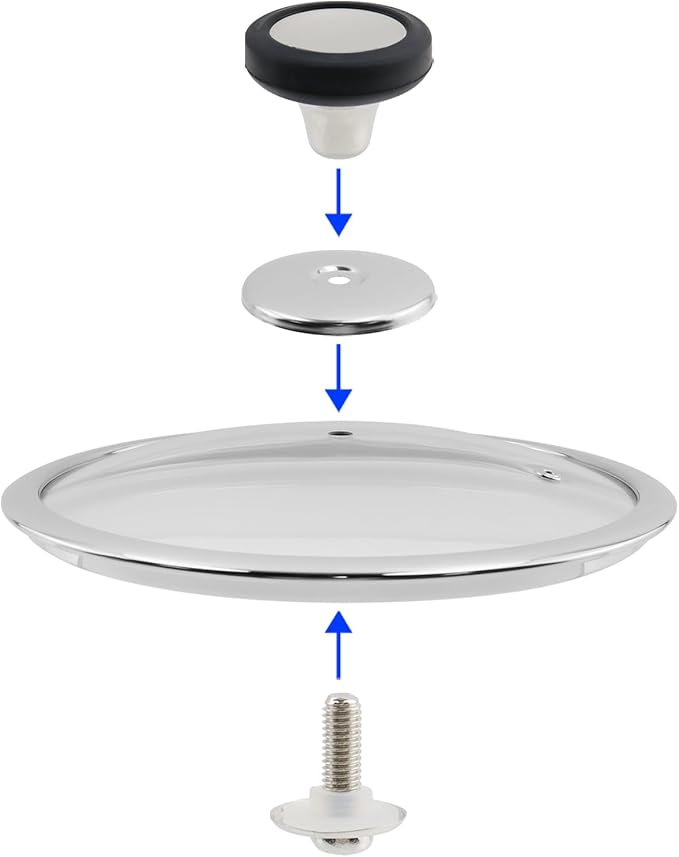 - Material:The lid is made of 4mm thick tempered glass, which won't break when dropped from a low height. The edges of the lid & vents are made of stainless steel and can be used with confidence.Also,silicone handle for effective heat insulation