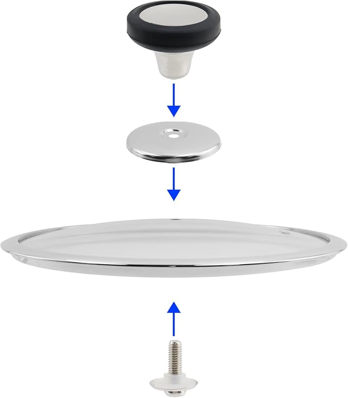 - Material:The lid is made of 4mm thick tempered glass, which won't break when dropped from a low height. The edges of the lid & vents are made of stainless steel and can be used with confidence.Also,silicone handle for effective heat insulation