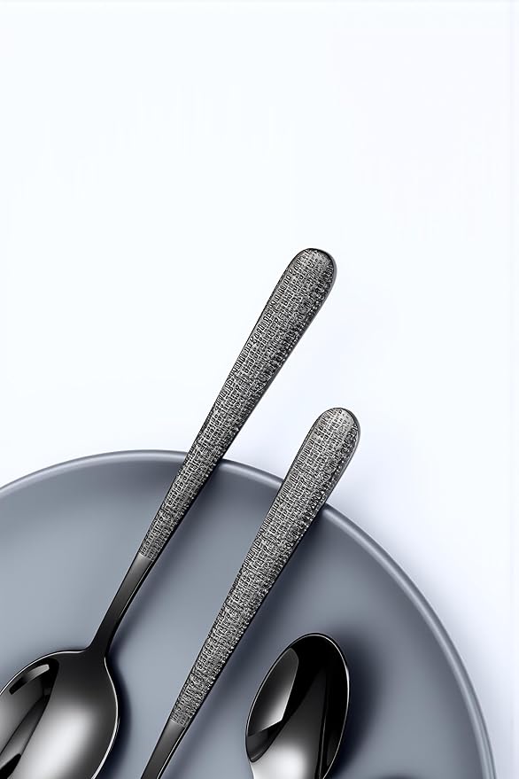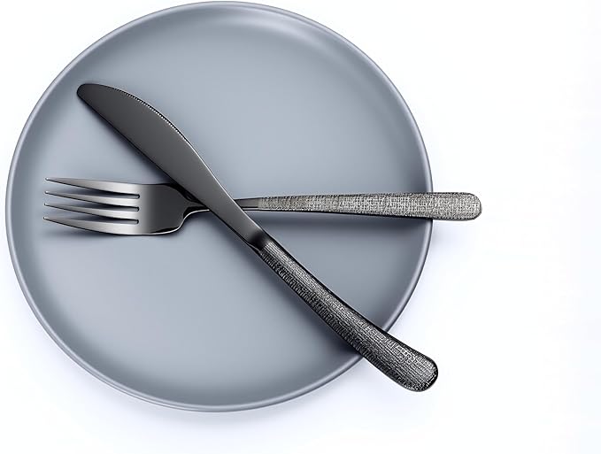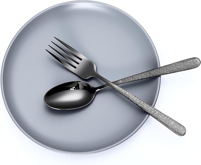 - Black And Silver Luxury: glossy black and glossy silver contrasting colors, simple and elegant, black silverware set instantly enhances the sense of ceremony when placed on the table.