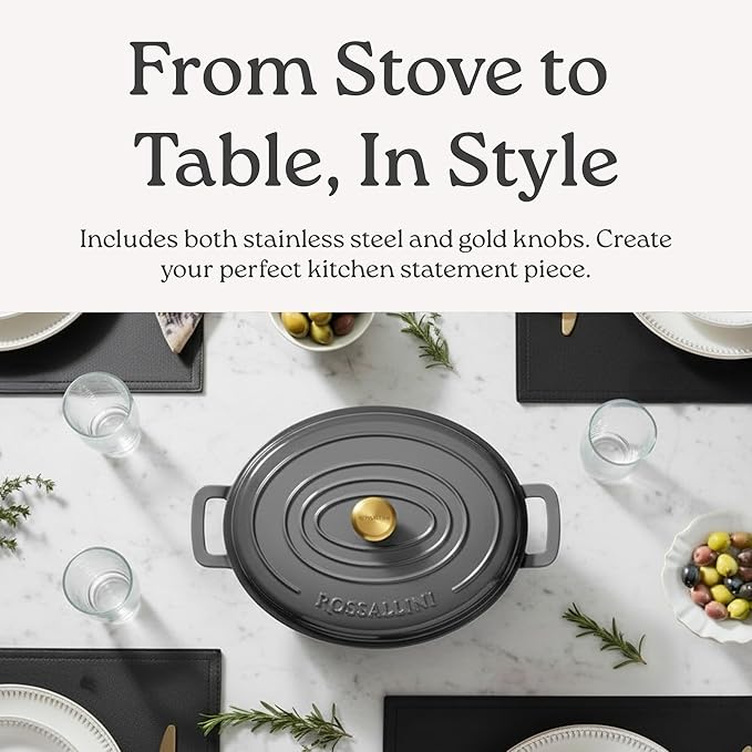 - REFINE YOUR RECIPES Superior heat distribution and retention of ROSSALLINI enameled cast iron cooks every dish evenly for deliciously tender meats & vegetables