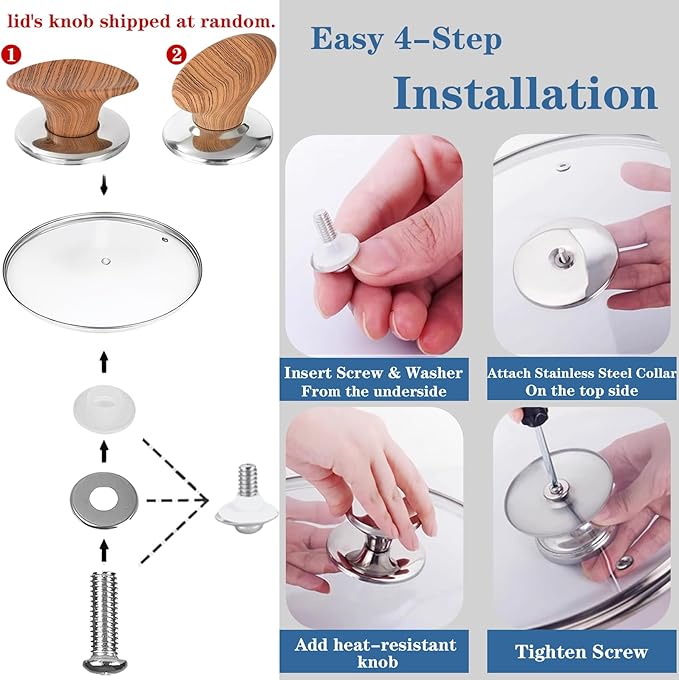 - Stainless Steel Build:The frying pan lid boasts a rust-resistant stainless steel rim and handle for durability. The wood knob handle is comfortable to grip,we have 2 popular styles, random delivery,dishwasher safe