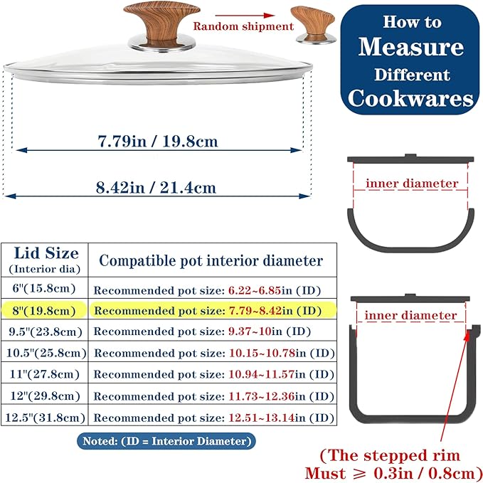 - Note: Measure your cookware before purchase.Sometimes you may receive a broken lid because of rough shipping, please tell me and I will solve the problem for you as soon as possible