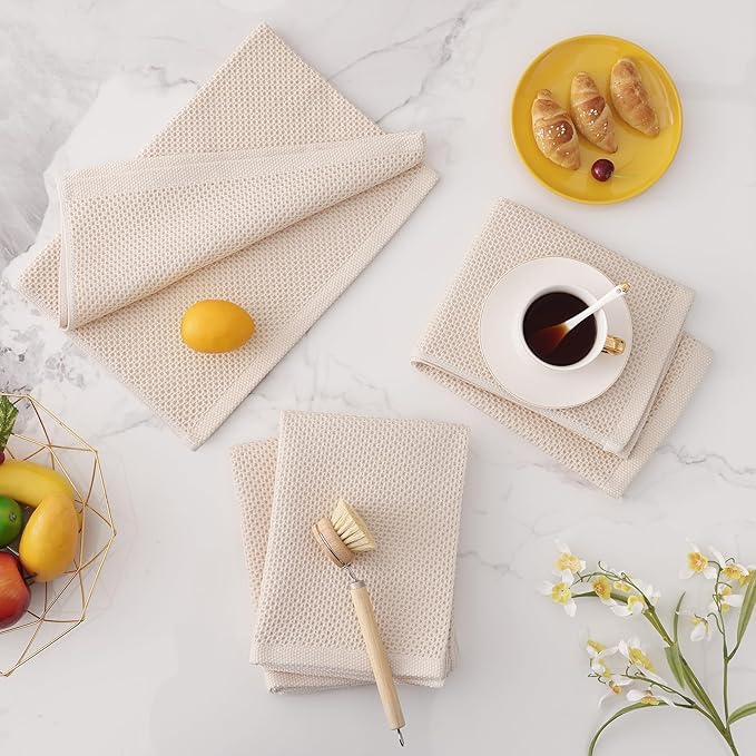 Homaxy 100% Cotton Waffle Weave Kitchen Dish Towels, Ultra Soft Absorbent Quick Drying Cleaning Towel, 20x28 Inches, 8-Pack, Beige