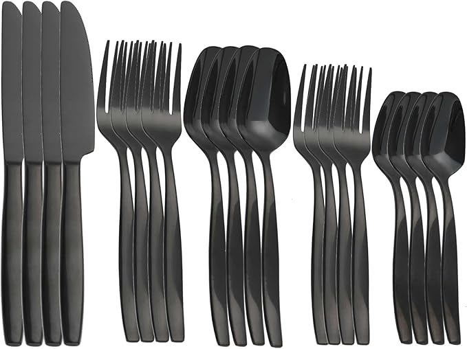 - 20-Piece Flatware Set for 4:Includes 4 dinner knives, 4 dinner forks, 4 salad/dessert forks, 4 dinner spoons, and 4 teaspoons, perfect for family meals, apartments, college dorms, and everyday dining. A versatile choice that blends seamlessly with both modern and classic table settings.