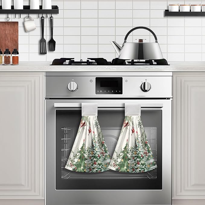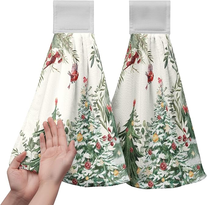 - Size and Material: The size of our winter hanging dish towel is 17 x 12 inch. Made of premium quality polyester, these Xmas cardinal kitchen tie towels are strong absorbent, soft, and not easy to fade