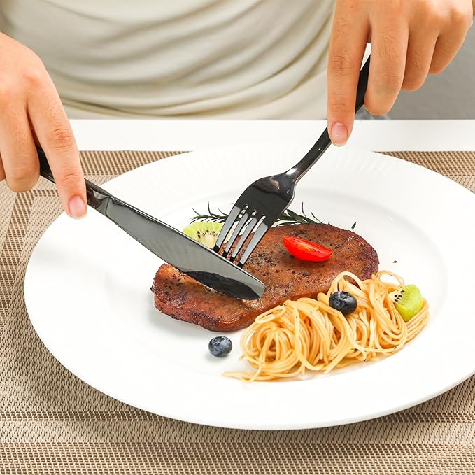 - Premium 18/0 Stainless Steel :Crafted from high-quality 18/0 stainless steel with a thickness of 2.5-3.0mm, this silverware set resists rust and corrosion, offering lasting performance. It is nickel-free and food-safe, making it a reliable choice for everyday dining.