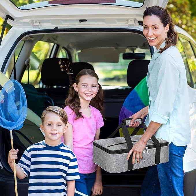 Insulated Casserole Carrier, Portable Casserole Carrier for Hot or Cold Food Lunch Tote Warmer or Cooler Bag, Lasagna Lunch Bag for Potluck Parties- Fits 9" x 13" Baking Dish-Light Gray