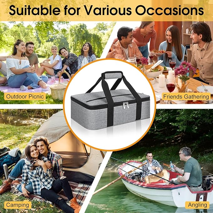 - Versatility: With its large capacity, simple and versatile color options, and lightweight construction, our insulated bag is perfect for storing and transporting food to potluck parties, picnics, tailgates, BBQs, and cookouts.