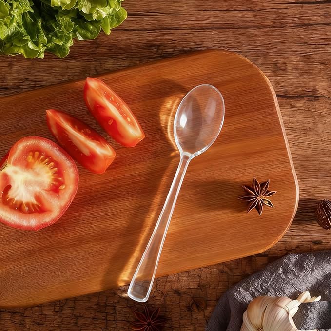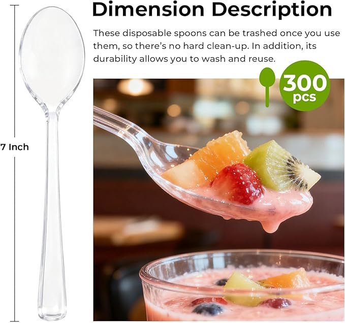 300 Count Clear Plastic Spoons Disposable, Heavyweight Cutlery Sets Solid and Durable Plastic Silverware Utensils for Parties, Events and Everyday Use (Spoons)