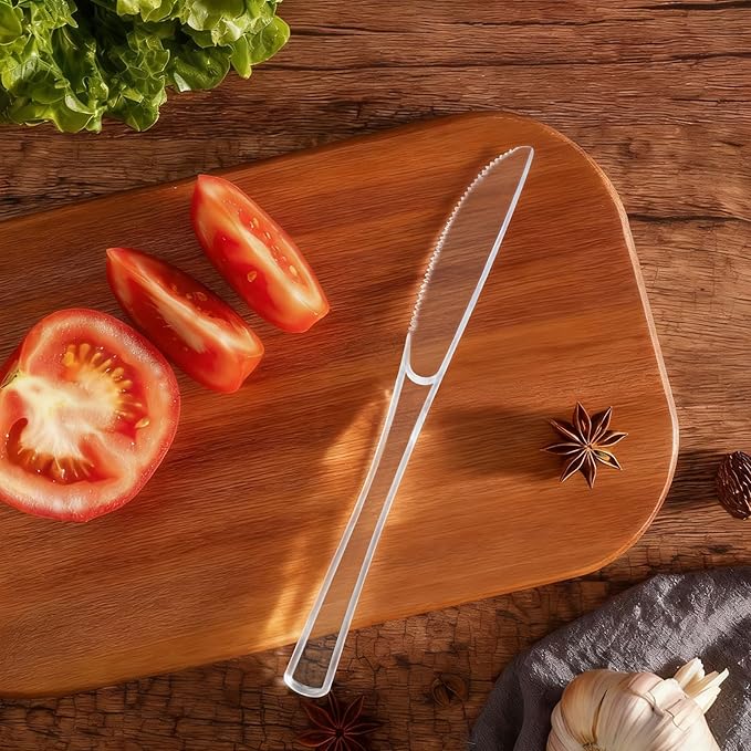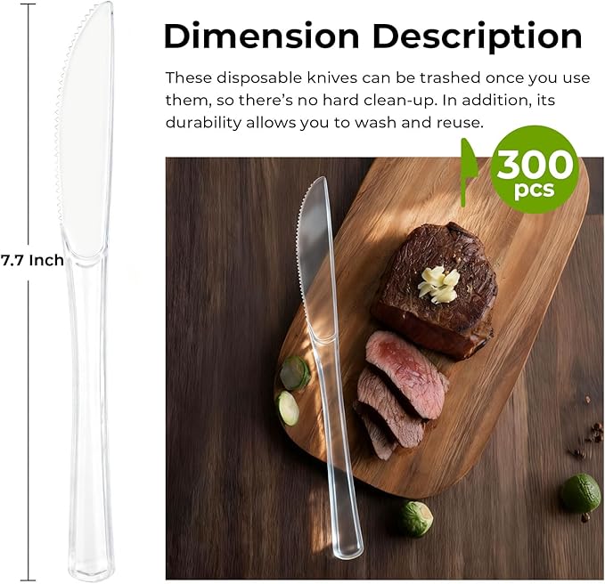300 Count Clear Plastic Knives Disposable, Heavyweight Cutlery Sets Solid and Durable Plastic Silverware Utensils for Parties, Events and Everyday Use (Knives)