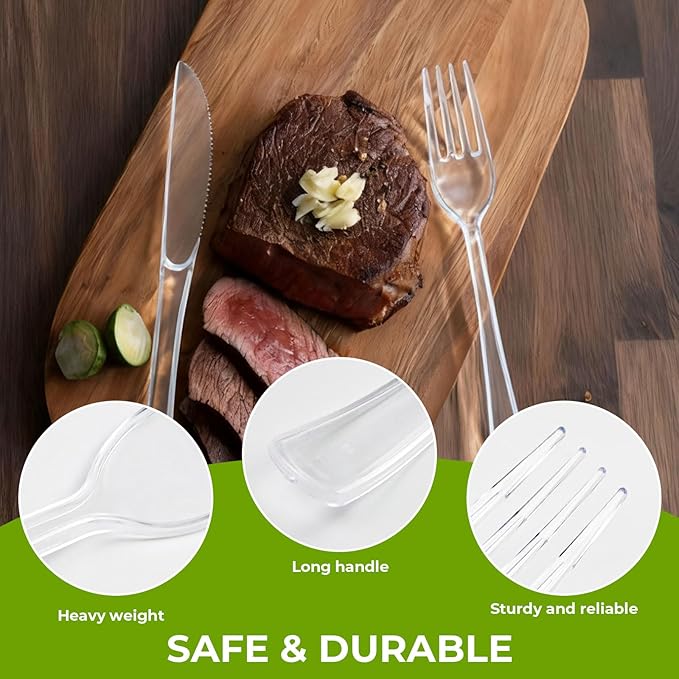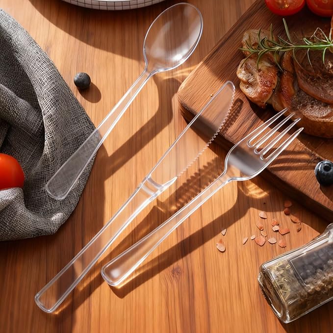 - DISPOSABLE OR REUSABLE: Though designed for single use, these sturdy utensils can be easily rinsed and reused multiple times, perfect for saving money and reducing waste. Great for picnics, parties, travel, or quick meals—whether you discard or reuse, these utensils deliver flexibility wherever you go.