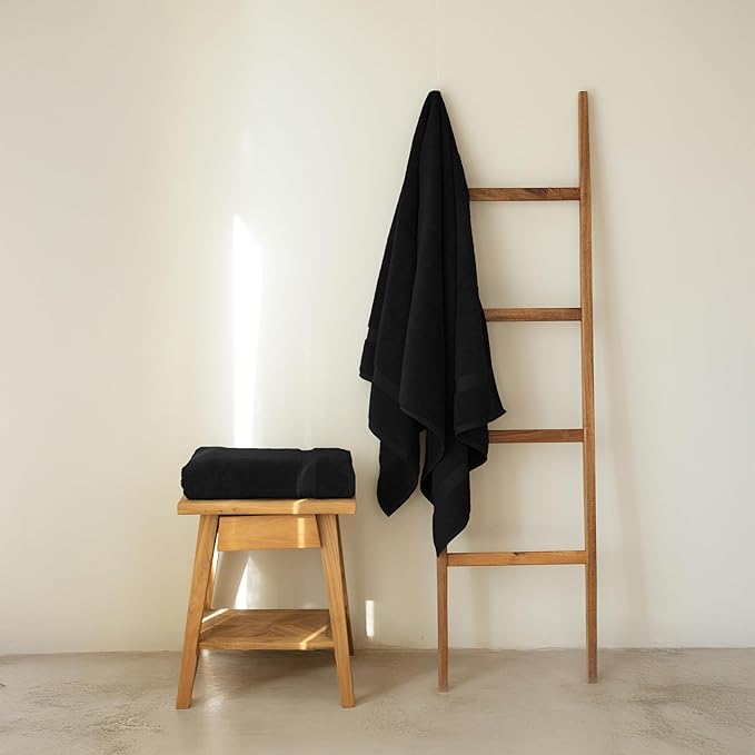 SALBAKOS 100% Turkish Cotton Extra Large Bath Sheet Set of 2 35x70 inch | Heirloom Quality | Hotel & Spa Collection | Soft, Absorbent Oversize Bath Towels | Made in Turkey (Black, 2 Bath Sheets)