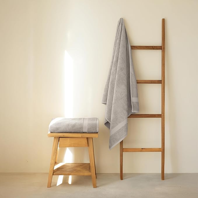 SALBAKOS 100% Turkish Cotton Extra Large Bath Sheet Set of 2 35x70 inch | Heirloom Quality | Hotel & Spa Collection | Soft, Absorbent Oversize Bath Towels | Made in Turkey (Silver, 2 Bath Sheets)