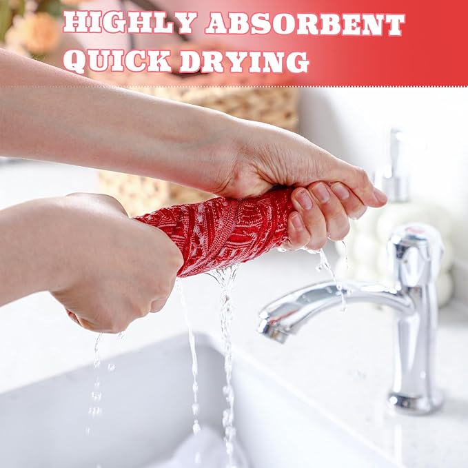 4 Pack Boho Bathroom Hand Towel 14 x 30 Inch 100% Turkish Cotton Decorative Boho Kitchen Hand Towel Farmhouse Bathroom Decor Set Absorbent Soft Guest Tea Gift(Red,White)