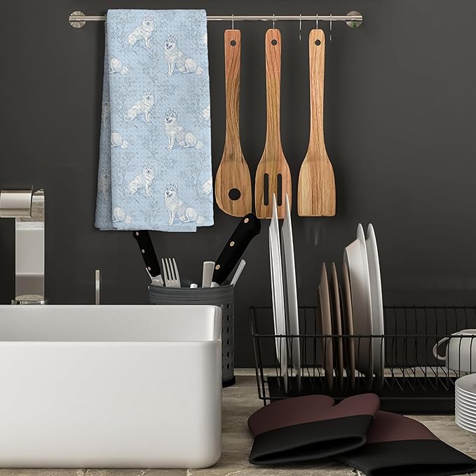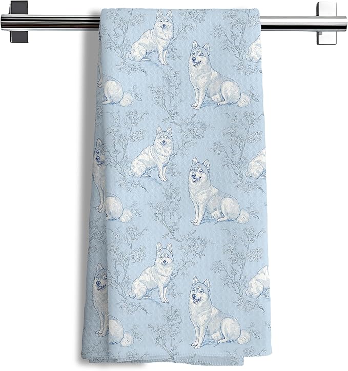 Siberian Husky Dog Gifts for Light Blue Chinoiserie Floral Decor Kitchen Towels,Blue and White Husky Dog Grandmillennial Decorative Dish Tea Towels for Kitchen Bathroom,16x24 Inch