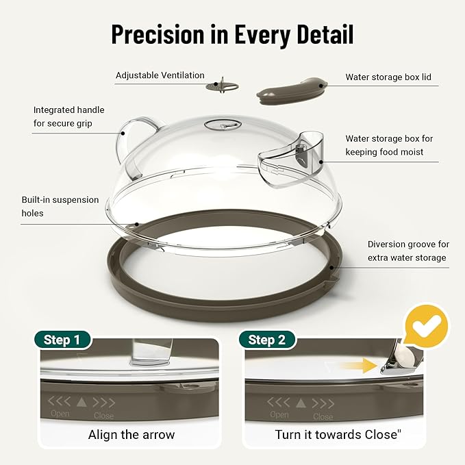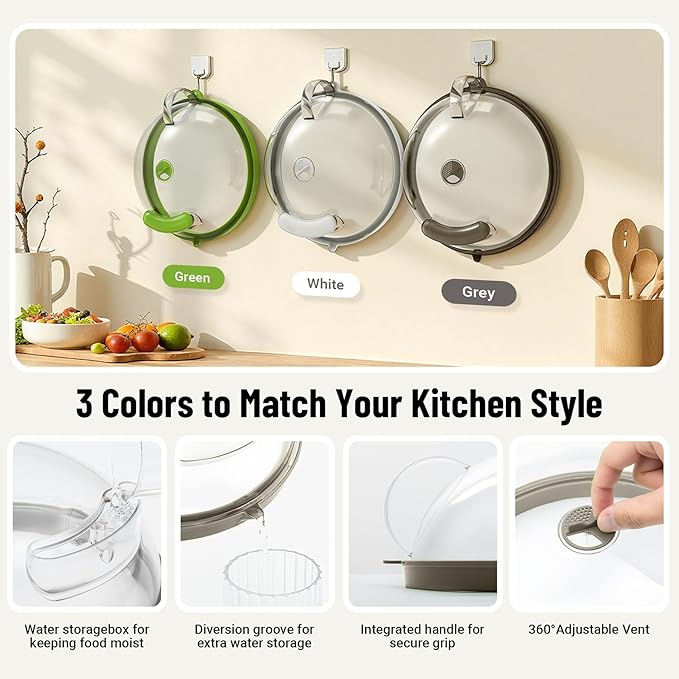 - Lock in Moisture & Flavor: Keep your food deliciously moist and flavorful with our microwave splatter cover. The built-in water storage box lets you add water before heating to retain moisture and prevent your meal from drying out. Plus, the unique drainage groove collects excess steam water to help keep your microwave clean and free of water spots.