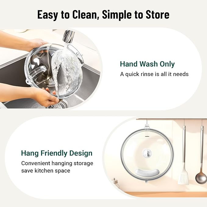 - Upgraded Handle for Safe & Easy Use: Designed with a sturdy, heat-resistant handle for a secure, comfortable grip, this cover makes it easier to lift hot food without burning your hands. Unlike heavy glass covers, it’s lightweight yet durable, ideal for everyday use.