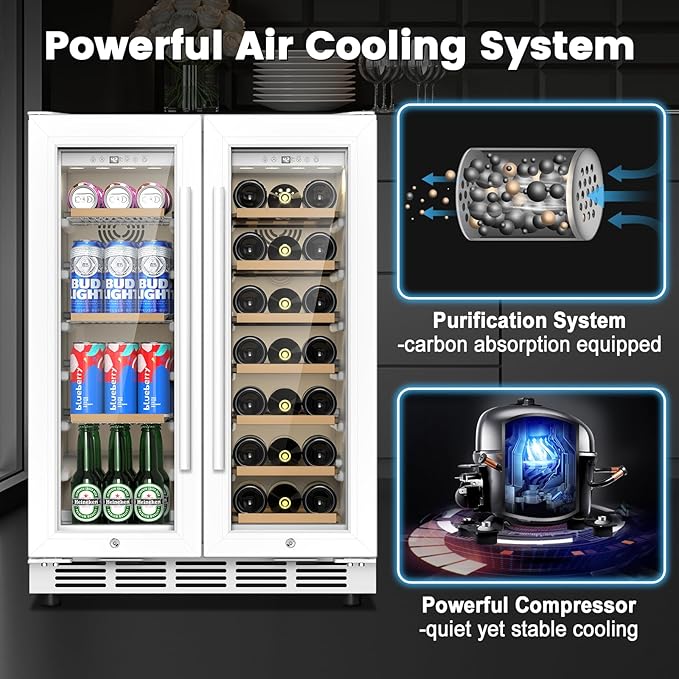 - Dual Zone Cooling for Wine & Beverages:This 24 inch wine and beverage refrigerator features two independent cooling zones. Store wines at perfect cellar temperatures (40-64°F) and keep beverages chilled (35-50°F) simultaneously in one sleek unit.