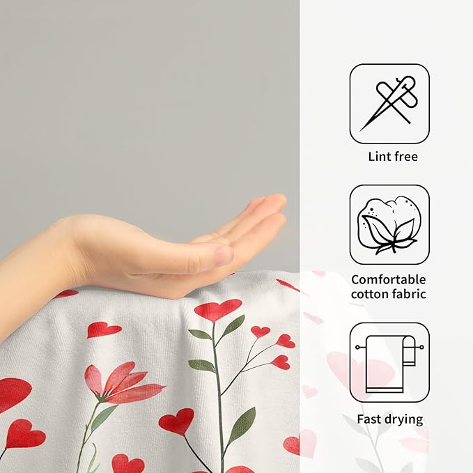 - 【Durable Materials】The Valentines red hearts bathroom towels made of high quality soft polyester microfiber material, which are durable, light, breathable, sweat-absorbent and refreshing. No velvet, soft and skin-friendly, easy to carry.