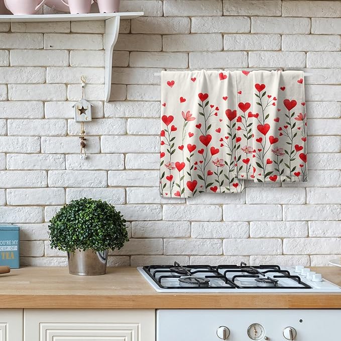 - 【Color & Design】Brilliant colors, unique pattern will automatically make towels stand out, and finished edges will prevent unravel. Watercolor floral love heart hand towels are the perfect complement to holiday kitchen decor, add fresh flair to your home decor.