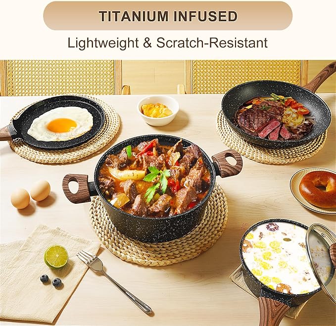 - HEALTHY GRANITE NON-STICK COATING: Superior granite coating for smooth, ultra-non-stick cooking; food slides off effortlessly without sticking. Free of PTFE, PFAS, PFOA, PFOS, APEO, lead, cadmium and other toxic substances that can leach into food.