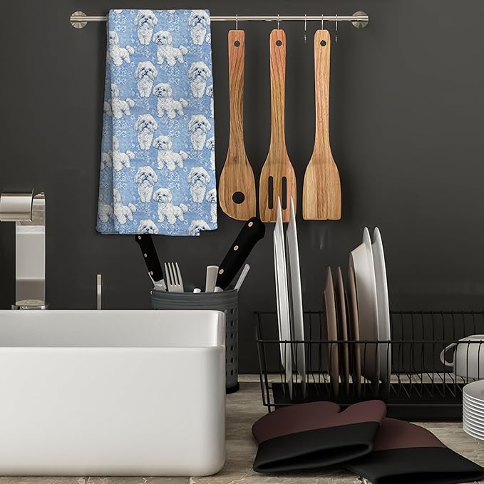 Shih Tzu Dog Gifts for Light Blue Chinoiserie Floral Decor Kitchen Towels,Blue Shih Tzu Dog Grandmillennial Decorative Dish Tea Towels for Kitchen Bathroom,16x24 Inch