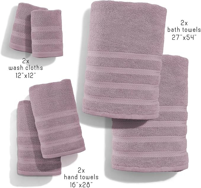 Hearth & Harbor Bath Towels for Bathroom - 100% Ring Spun Cotton Luxury Bathroom Towels - Soft & Highly Absorbent Bath Towels Set, 6 Piece Set, Dusty Purple