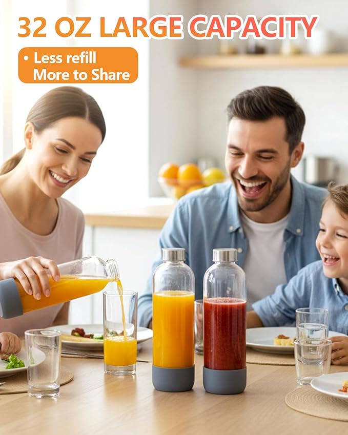 - NON-SLIP, QUIET SILICONE RUBBER BASE: The easy care, dishwasher safe Zukro 32 oz glass juice bottles set will surely please you! We focus on every detail of our products and safe packaging. If, for any reason, you are not satisfied with the juicer bottles, Please contact us