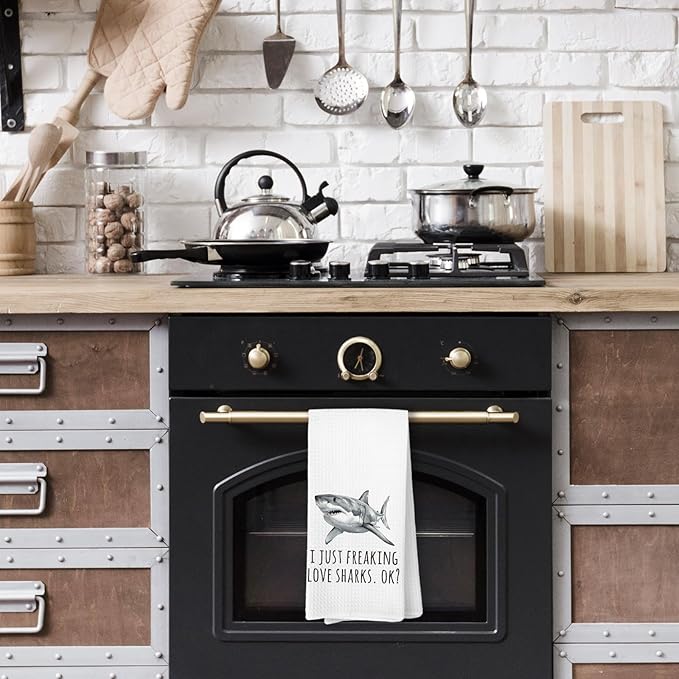 Ocean Shark Bathroom Gifts Decor Hand Towels - I Just Freaking Love Sharks Kitchen Towels, Ocean Shark Animal Kids Bathroom Decor Hand Towels, Sharks Gifts for Women,Home & Kitchen