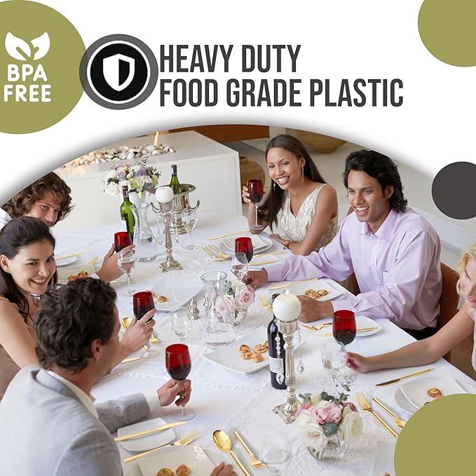 - PREMIUM QUALITY: These disposable silverware heavy duty tableware utensils not only look stunning but are very sturdy. We Are Proud To Say That Our durable fancy plastic silverware set Is Made with Bpa Free Plastic That Is Recyclable Too! It Is The Perfect Holiday and Thanksgiving cutlery - upscale disposable dinnerware