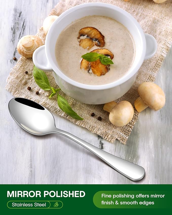 - COMFORTABLE AND ERGONOMIC: Each cutlery set is thoughtfully crafted with dimensions that are perfectly sized for comfort and utility. Never deal with silverware that is too big or too small. Featuring curved handles and a rounded end with gently sloped edges for a smooth feel, serve the family a feast with these classic pieces