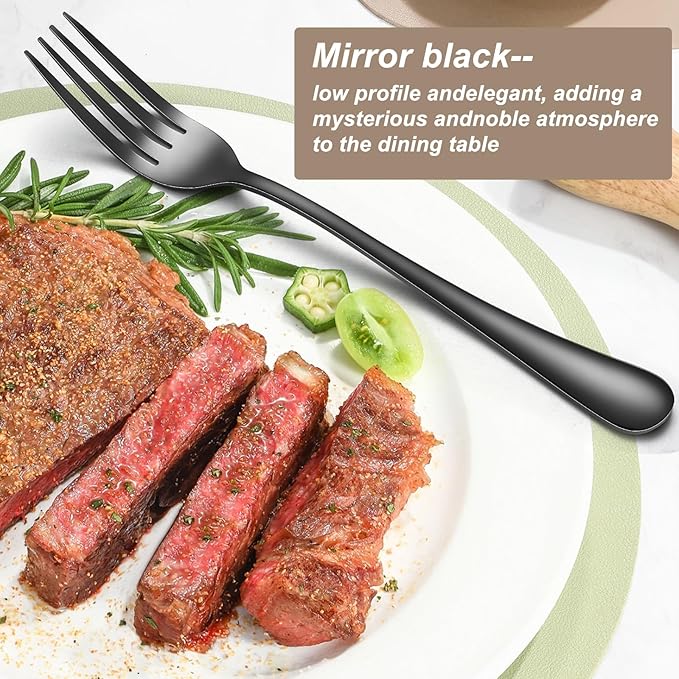 - 【Food Grade Stainless Steel, Safe and Anti Rust】Crafted from premium food-grade stainless steel with mirror polishing, Dinner forks offer a durable set built to last for years. Their edges are repeatedly smoothed for a silky feel that won't scratch your mouth. Rust-resistant and corrosion-proof, they're dishwasher-safe—an ideal replacement for plastic forks.