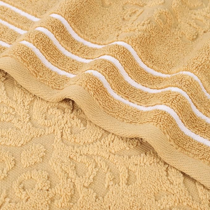 Superior Cotton 6 Piece Towel Set, 2 Bath, 2 Hand, 2 Washcloth/Face Towels, Quick Dry, Home Essentials, Shower, Spa, Luxury Plush Soft Absorbent Towels, Zero-Twist, Jacquard Floral, Gold