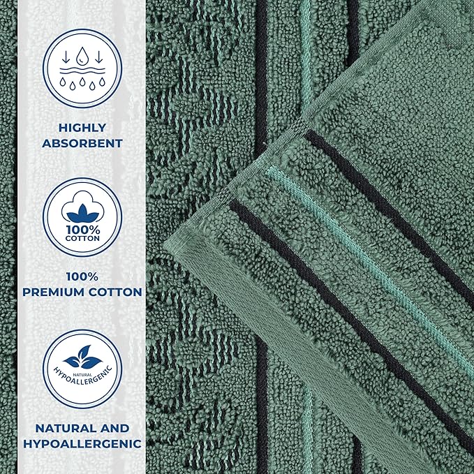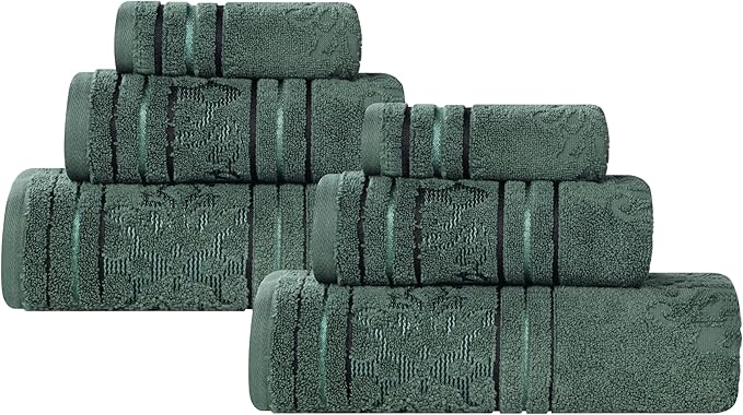 Superior Cotton 6 Piece Towel Set, 2 Bath, 2 Hand, 2 Washcloth/Face Towels, Quick Dry, Home Essentials, Shower, Spa, Luxury Plush Soft Absorbent Towels, Zero-Twist, Jacquard Floral, Forest Green