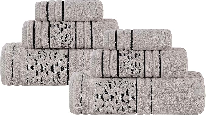 Superior Cotton 6 Piece Towel Set, 2 Bath, 2 Hand, 2 Washcloth/Face Towels, Quick Dry, Home Essentials, Shower, Spa, Luxury Plush Soft Absorbent Towels, Zero-Twist, Jacquard Floral, Platinum