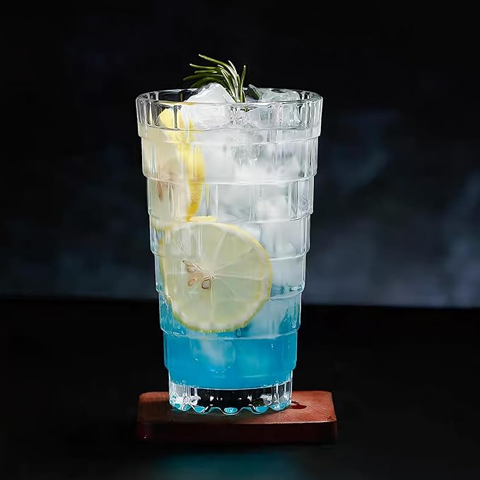 Vintage Drinking Glasses Set of 6, Mojito Glass Cups Stackable Water Tumbler, for Beer, Cocktail, Whiskey, Juice & Mixed Drinks. (15 OZ)