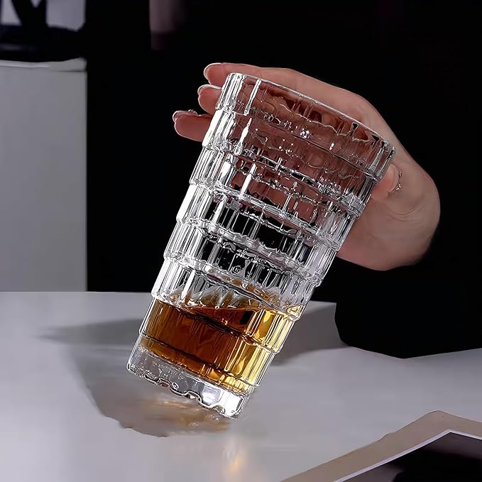 - Set of 6 Classic Glass Cups: This set of 6 large-capacity tumblers adds a different atmosphere to your friend gatherings and holidays, combination of retro and fashion. The stackable design of these cups allows for easy storage, saving valuable space in your kitchen cabinets.