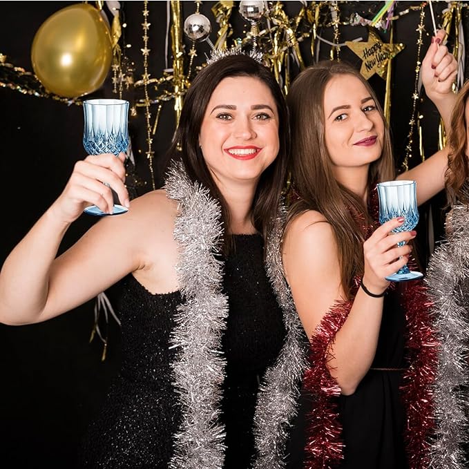 XUWAIDSGN 7oz Plastic Vintage Wine Glasses Drinking Glasses Unbreakable Wedding Glassware Crystal Water Goblets Reusable Drinkware Vintage Champagne Flutes (100, Blue)
