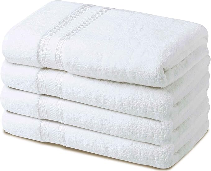 Large Bath Towels Set of 4 – 27x54 Inches – 100% Cotton – Quick Dry & Highly Absorbent – Durable for Bathroom, Spa & Hotel Use – White