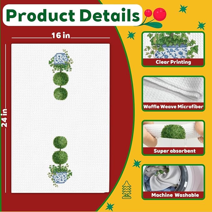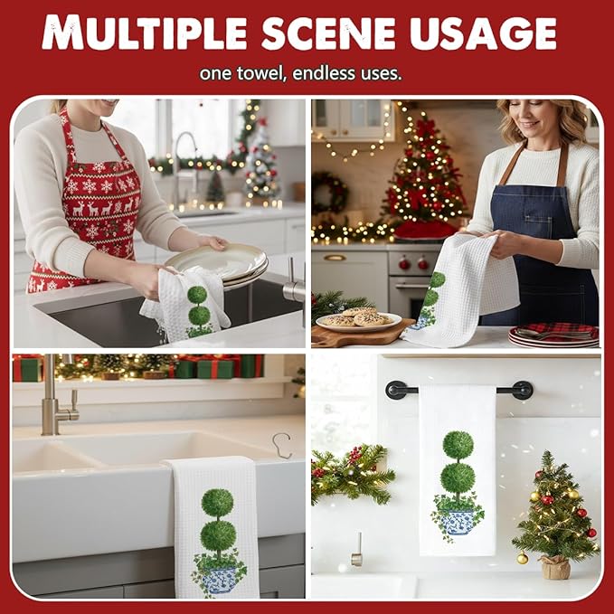 - Grand millenial christmas decor: These versatile towels are great for various spaces, whether it's drying dishes in the kitchen, wiping countertops, cleaning up in the bathroom, or even adding a stylish touch to your dining room or outdoor patio