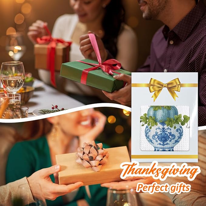 - Thanksgiving gift ideas: Versatile and stylish, they’re suitable for kitchens, bathrooms, and restaurants with these decorative hand towels for kitchen. A thoughtful tea towels for kitchen combine the essence of fall kitchen towel gifts with everyday utility