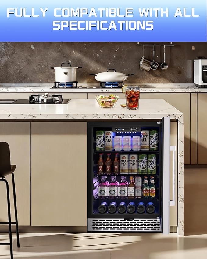 24-Inch Built-In Beverage Cooler, 200 Can Capacity, Smart Control System, for Soda, Beer, Wine & Water, Ideal for Kitchen, Bar, Living Room