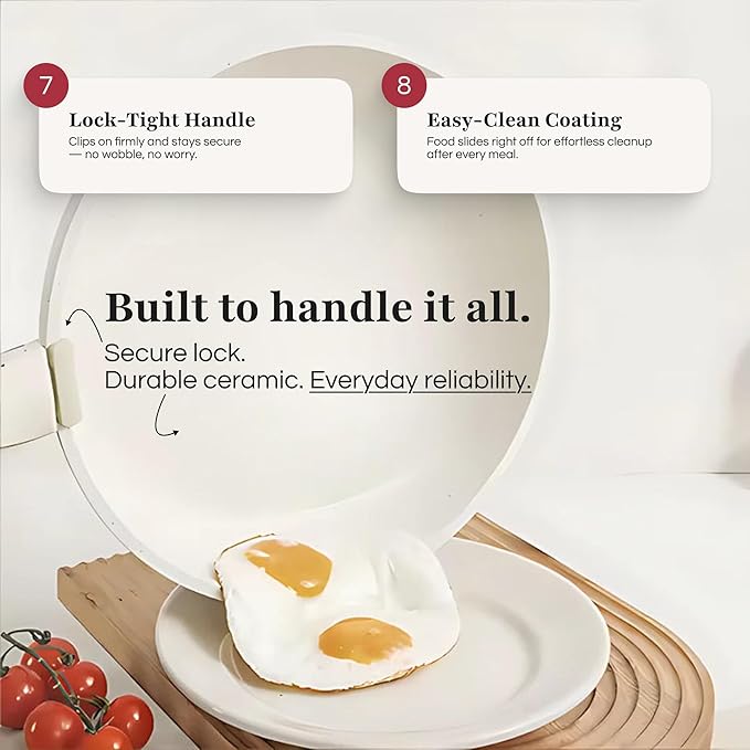 - NON TOXIC CERAMIC COOKING - PFAS free ceramic surface made without PFOA lead or cadmium for clean & safe everyday cooking. Offers a naturally smooth nonstick release & helps keep meals healthier with less oil.