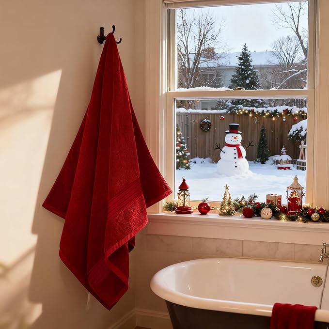 COZYART Cherry Red Bath Towels for Bathroom 6 Pcs, Turkish Cotton Bath Towel Set Super Soft Highly Absorbent Durable 650 GSM Shower Towels for Daily Use