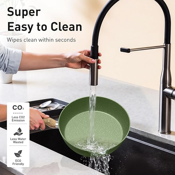- Effortless Non-Stick Cooking: Enjoy hassle-free cooking with our pots and pans set. The non-stick coating prevents food from sticking, making clean-up faster and cooking more enjoyable.