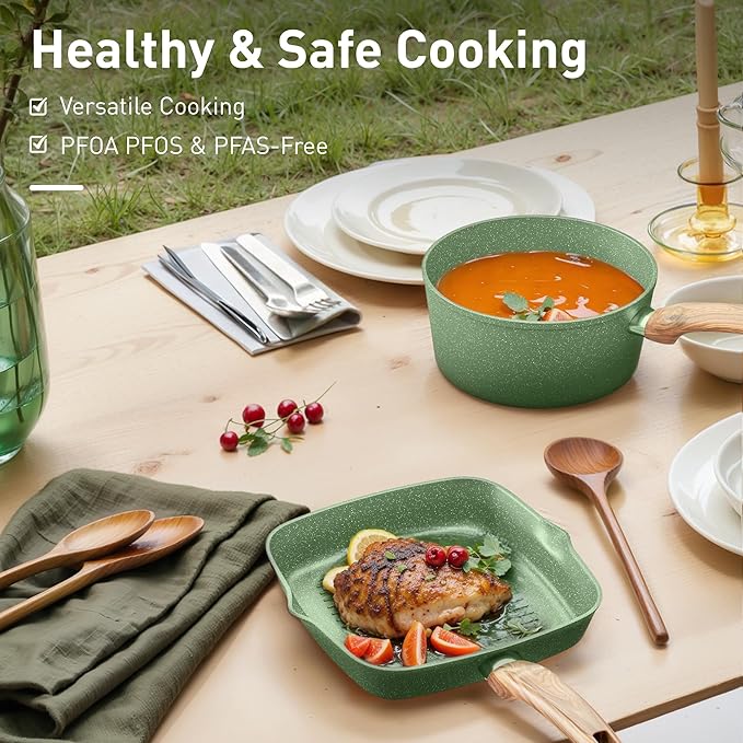 - A Perfect Present Idea: Looking for a thoughtful present? Our non stick pots and pans set is the ideal choice for Christmas, New Year’s, or housewarming presetnt that will impress loved ones.