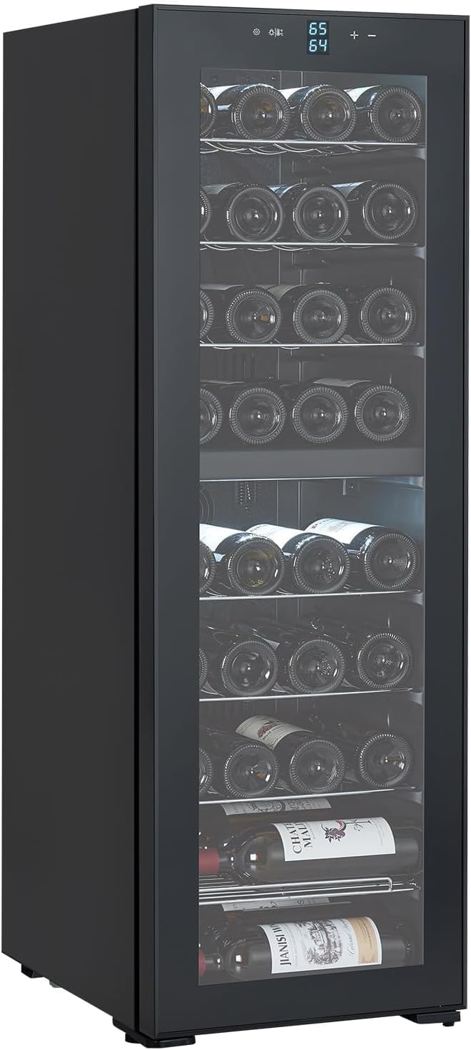 - 【32 Bottle Large Capacity】This freestanding wine fridge has space for up to 32 bottles of red wine, white wine, champagne, or sparkling wine. Its compact design delivers large capacity storage, making it ideal for small kitchens, mini bars, dining rooms, or entertainment spaces needing versatile beverage storage.
